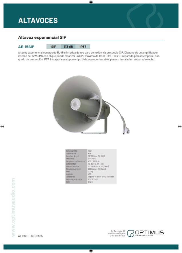 Altavoz de techo de dos vías (6,5″+0,75″). Potencia de 20 W, seleccionable a 10 o 5 W. Sensibilidad a 1 kHz, 1 W y 1 m de 90 dB. Presión acústica máxima (SPL) a 1 kHz, 1 m de 103 dB…